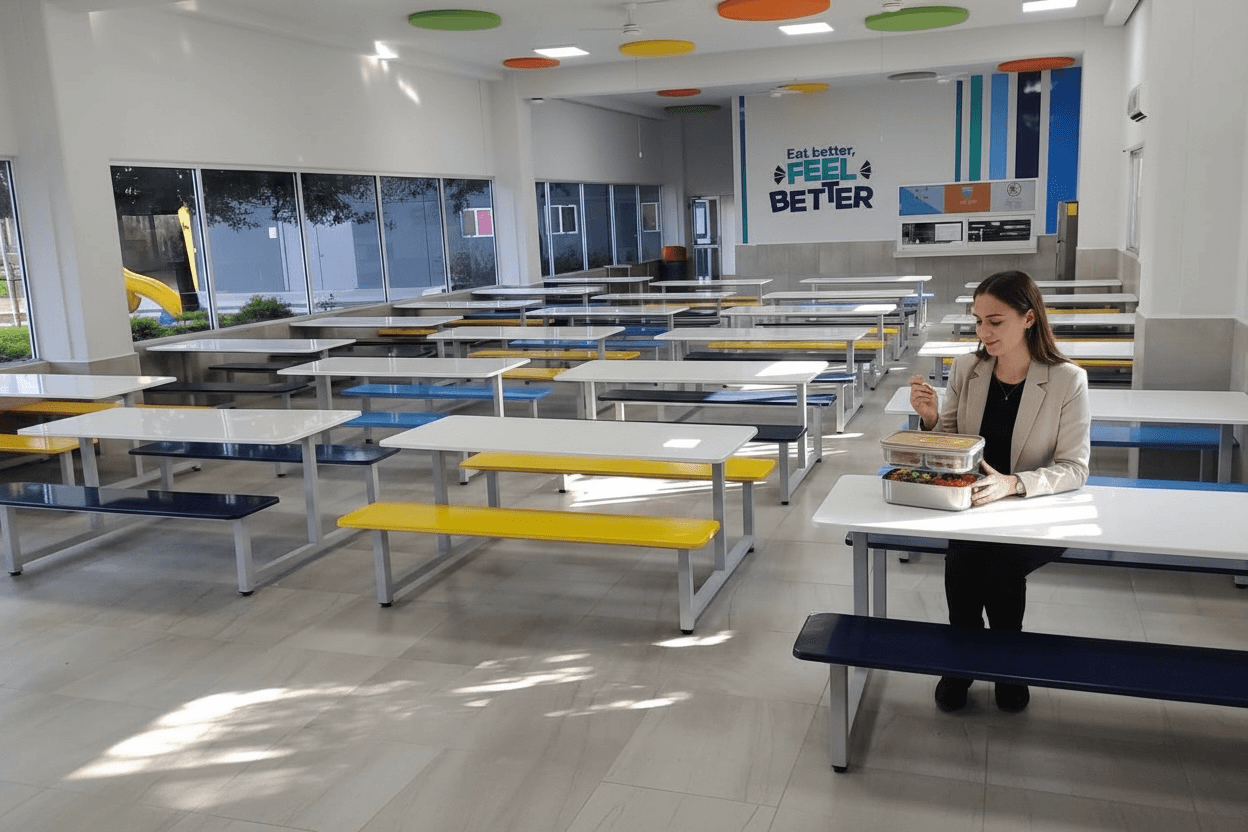 Banca fastfood 4 plazas asientos cómodos ISO coloridos