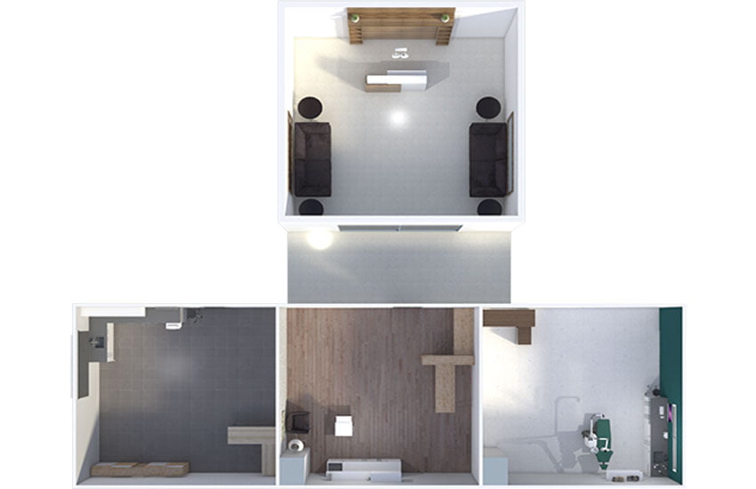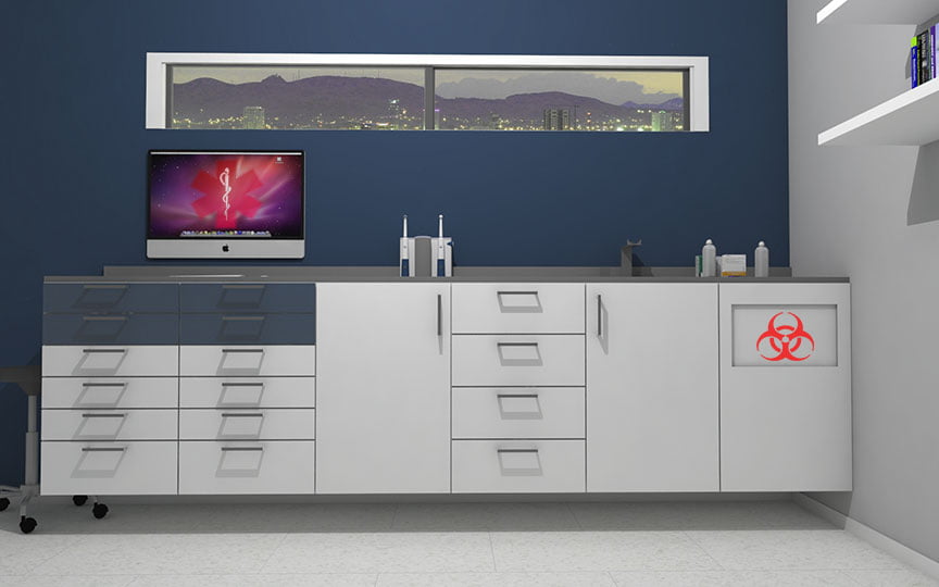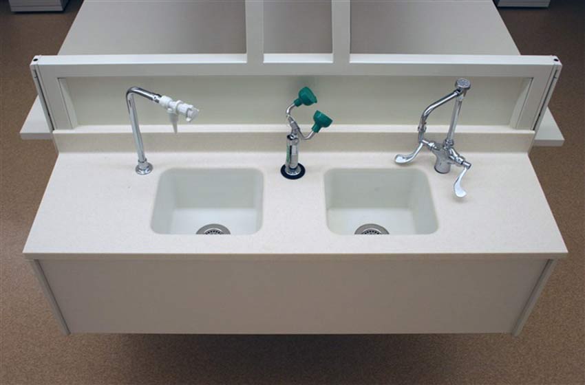 Materiales hechos para clínicas y hospitales, diseños de muebles para evitar humedad y espacios sin limpiar. Lavamanos y cubiertas en CORIAN