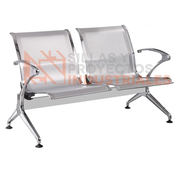 Banca metal asiento y respaldo lamina metal micro perforado. Patas y descansa brazos acabado cromado. Incluye niveladores de altura para todo tipo de pisos.