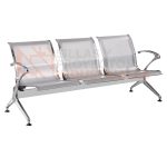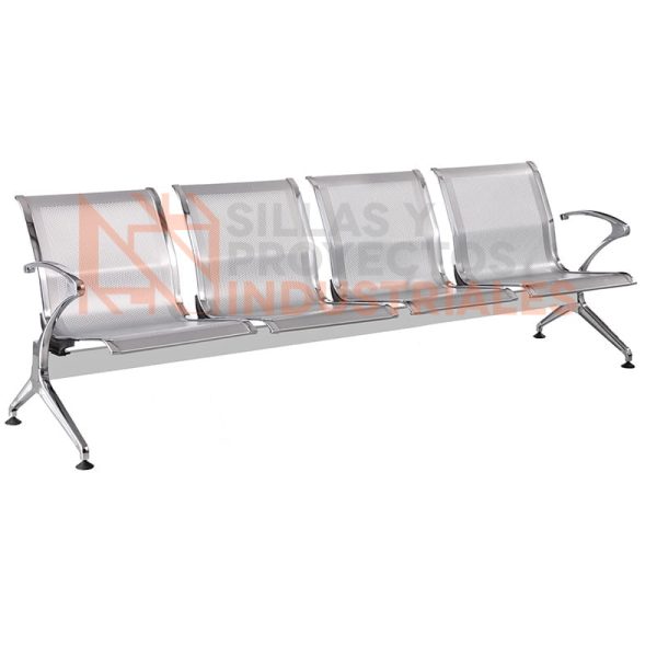 Banca metal asiento y respaldo lamina metal micro perforado. Patas y descansa brazos acabado cromado. Incluye niveladores de altura para todo tipo de pisos.