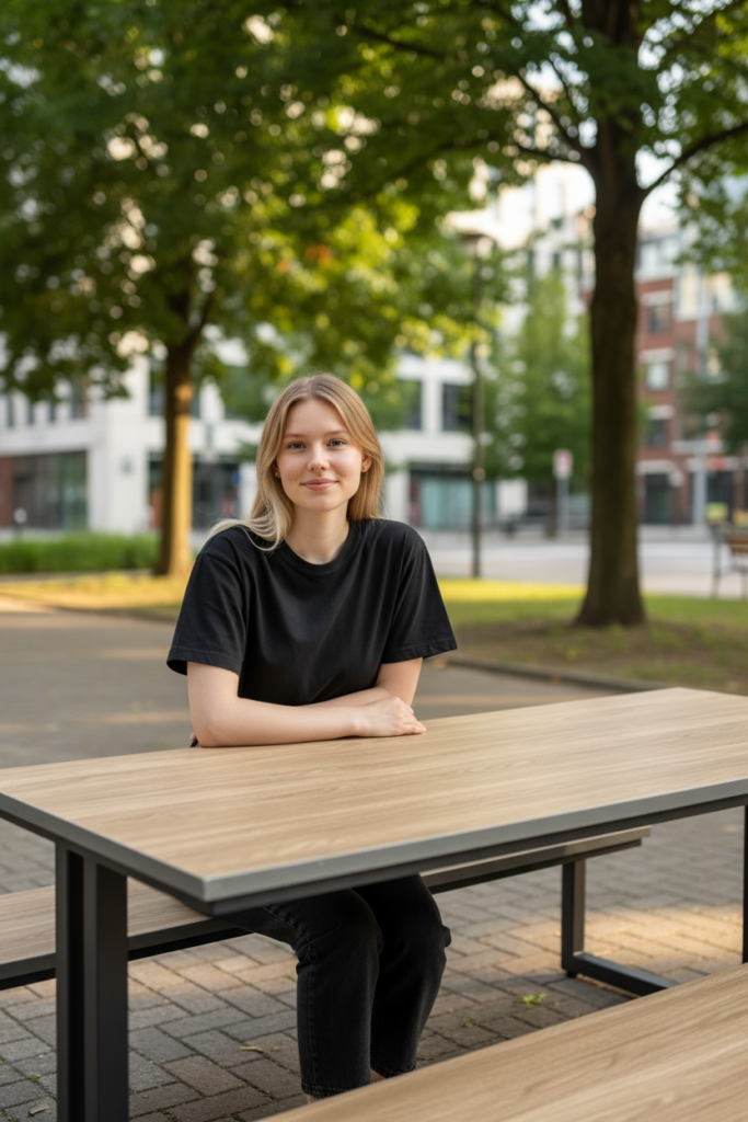 Mesa modelo comercial con estructura en metal con pintura electrostática en polvo.