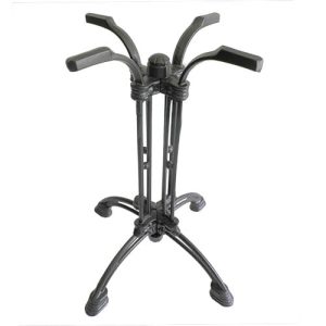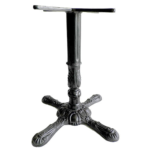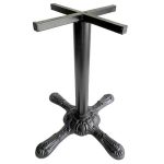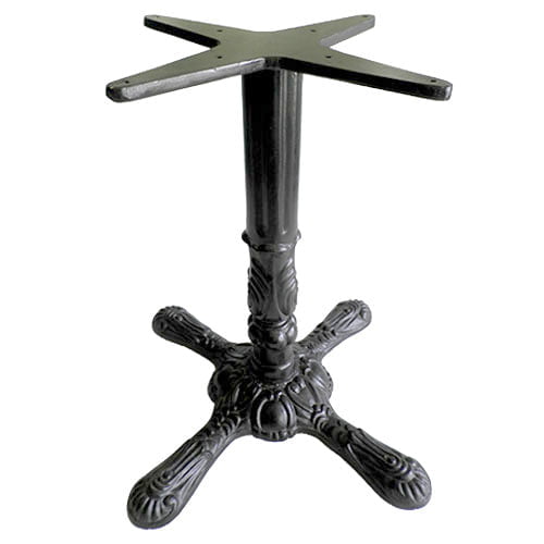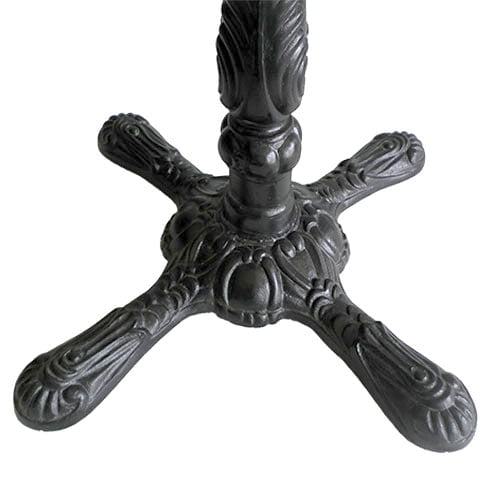 Base tipo pedestal tipo cruz con diseño burbuja vintage, parte inferior de aluminio fundido con tubo central 3″ recubrimiento pintura electrostática uso industrial para interior y exterior.
