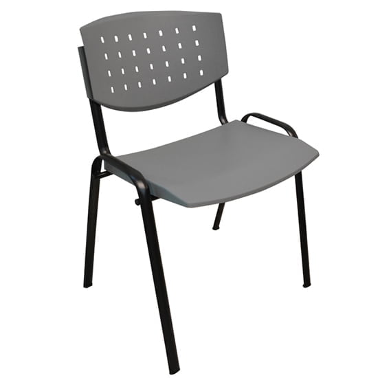 El cuerpo de la silla está fabricado en polipropileno de alta densidad con protección UV. Su respaldo cuenta con un patrón de perforaciones aerodinámicas que permiten una ventilación constante, evitando la acumulación de calor corporal durante reuniones o jornadas largas. La curvatura del asiento ha sido diseñada bajo estándares ergonómicos para reducir la presión en la zona poplítea (detrás de las rodillas), mejorando la circulación.