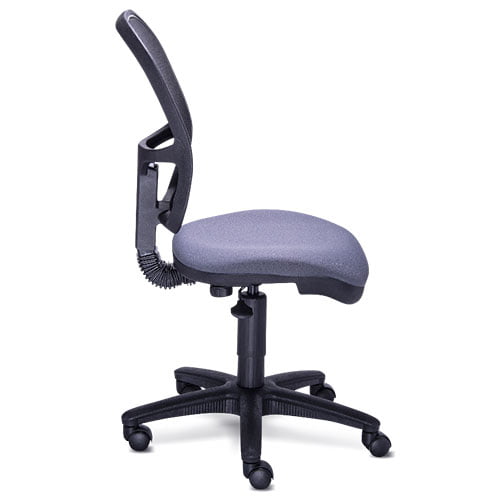 Ajuste de altura por medio sistema lama del respaldo. Asiento y respaldo con diseños ergonómicos para máximo confort. Acojinamiento en el asiento de poliuretano inyectado de kg/m³ de densidad con retardante de flama. Respaldo en mesh. Mecanismo Básico, elaborado con placa de acero cal. 10.