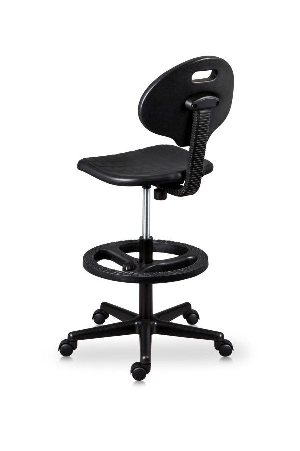 Silla con una base de reducido tamaño siendo el mismo versátil para espacios operativos. Viene a dar solución a problemas de fatiga en trabajadores que realizan tareas de postura parada.