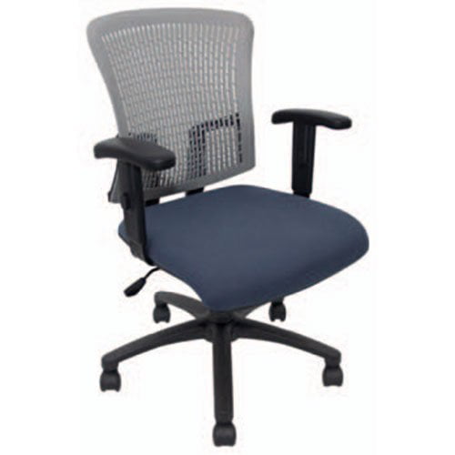 Silla oficina estructura en  polipropileno de alta densidad para máxima resistencia y a la vez ligera. Respaldo en malla tipo mesh y asiento en tela permitiendo una mejor limpieza e higiene.  A su vez dando paso de aire y mejorando la perceptiva de espacio abierto.