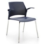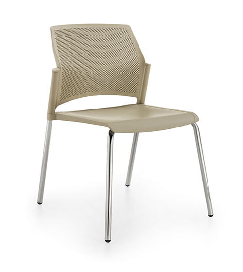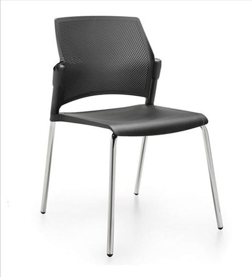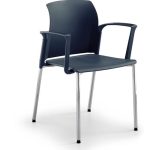 Contemporánea y dinámica, esta silla apilable cuenta con un marco tubular de acero de cuatro patas y está disponible en la versión con respaldo de polipropileno y asiento, con o sin brazos. La serie también comprende un elegante taburete apilable.