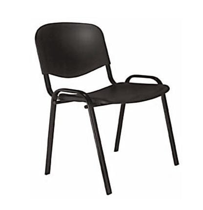 Silla con asiento y respaldo en polipropileno con una estructura rígida en metal reforzando su estructura.