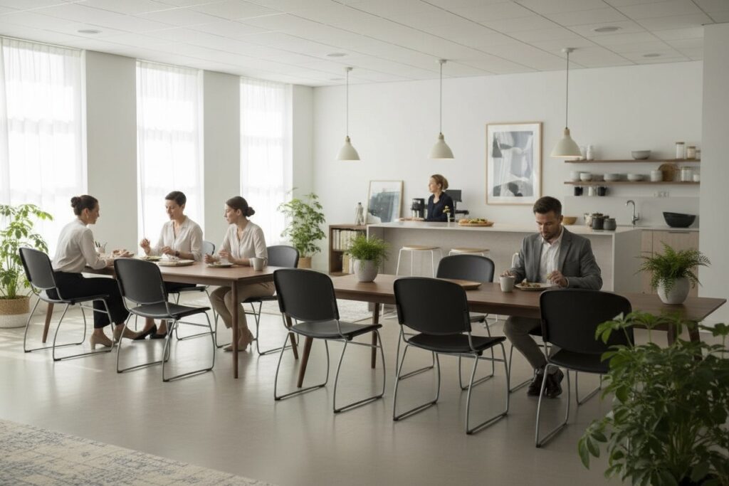 La estructura de metal puede ser color gris, negro o cromo(costo adicional). Para usos desde comedores industriales hasta oficinas o cafeterías.